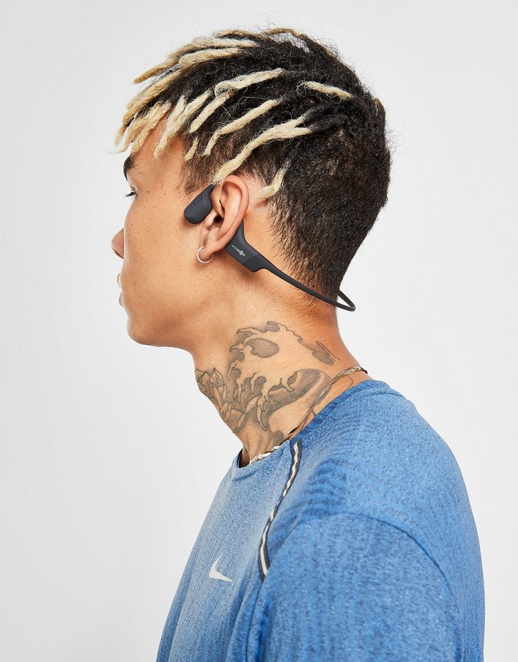 Aftershokz aeropex open ear wireless bone conduction kopfhörer mit sportgürtel, cosmic black.